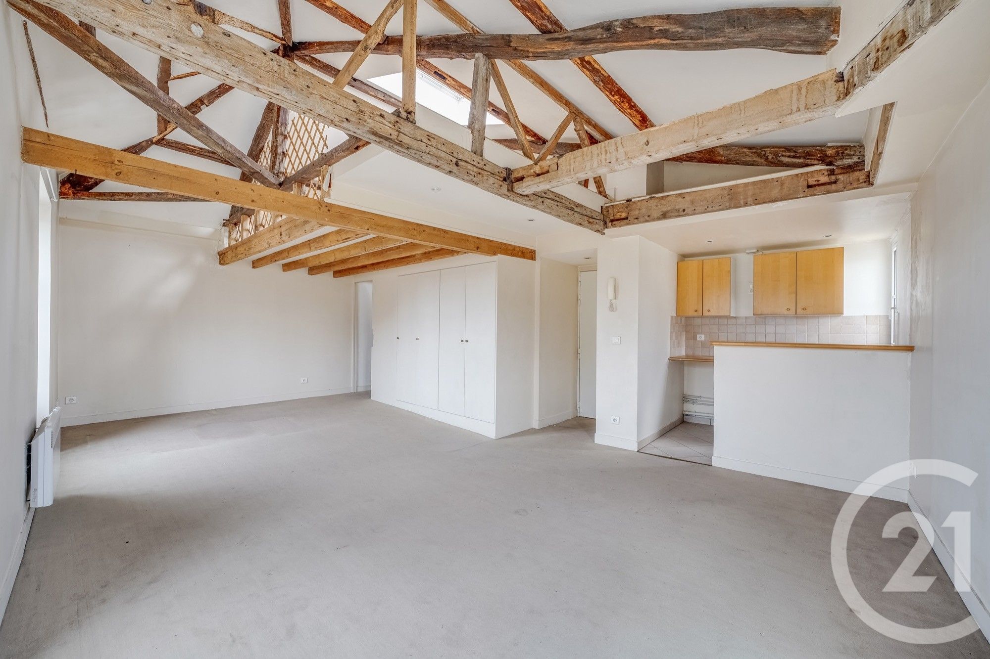 Installé sous les toits d'un immeuble ancien de caractère, l'appartement séduit par ses volumes atypiques, sa belle hauteur sous plafond et ses poutres apparentes, qui lui confèrent une atmosphère chaleureuse et singulière. L'exposition Sud-Est baigne les espaces de lumière naturelle, du matin jusqu'à la fin de journée.